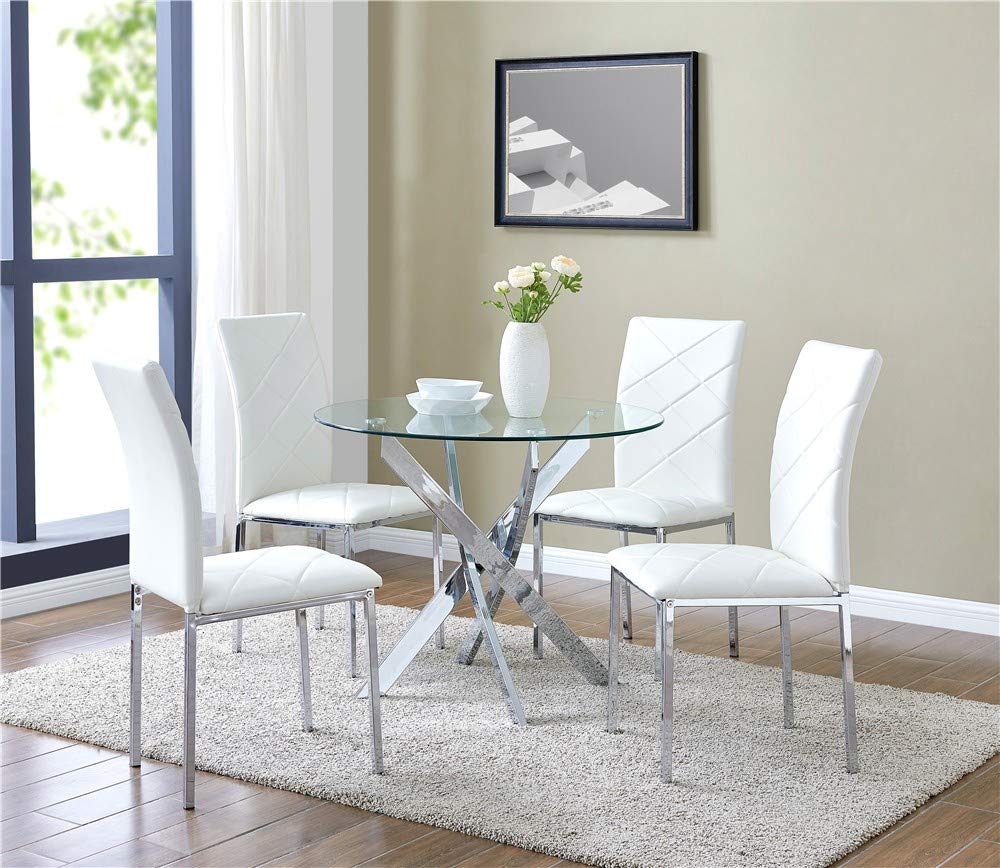 Round Glass Dining Room Set : Novara Modern Round Chrome Metal And Clear Glass Dining Table And 4 Stylish Faux Leather Chrome Leg Milan Dining Chairs Set Dining Table 4 Grey Milan Chairs Amazon Co Uk Home Kitchen / Can glass dining room sets be returned?. The 5 pieces kitchen table set comes with a simple design and lightness fresh color bring your home new energy. Add to compare 0 /4. If you prefer the feel of an informal eating arrangement, consider a round dining room set. Add to compare 0 /4. ( round table & 6 side chair),created for macy's.